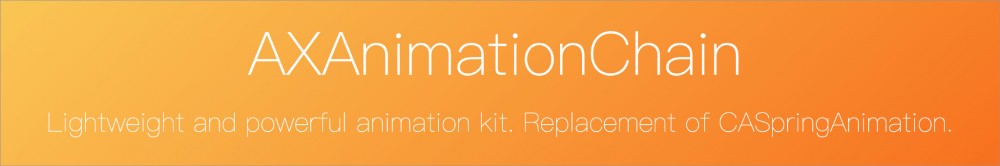 AXAnimationChain 基于 CoreAnimation 定义了几种 Animator , AXChainAnimator 是基类,预定义了一系列 Animate 操作,可以 链接 、 组合 并且控制动画完成的 回调 :