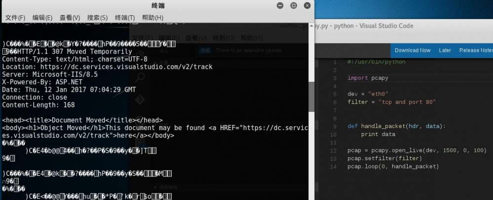 下面我们来看看如何使用pcapy实现数据包的捕获。