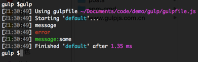 此时当编译错误的语法时,命令行会出现错误提示。而且不会让 gulp 停止运行。