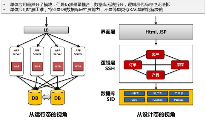 不管是从运行态还是设计态来看,传统的单体应用最大的问题就是各个组件和模块之间紧耦合,而这种耦合带来的问题就是扩展困难,升级和变更困难(模块间相互影响大)。