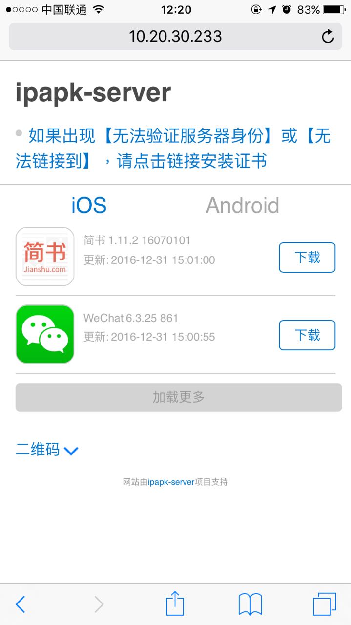 该项目默认使用自签名的证书,如果你有正规CA颁发的证书,可替换 ~/.ipapk-server 目录下的证书。