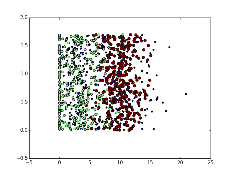 >>> ax.scatter(mat[:, 1], mat[:, 2], 15.0*np.array(vec), 15.0*np.array(vec))