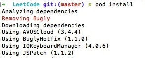 注意如果之前已经在Cocoapods中集成Bugly的话,需要将 pod Bugly 注释掉。因为 BuglyHotfix 本身已经带有Bugly的功能了。