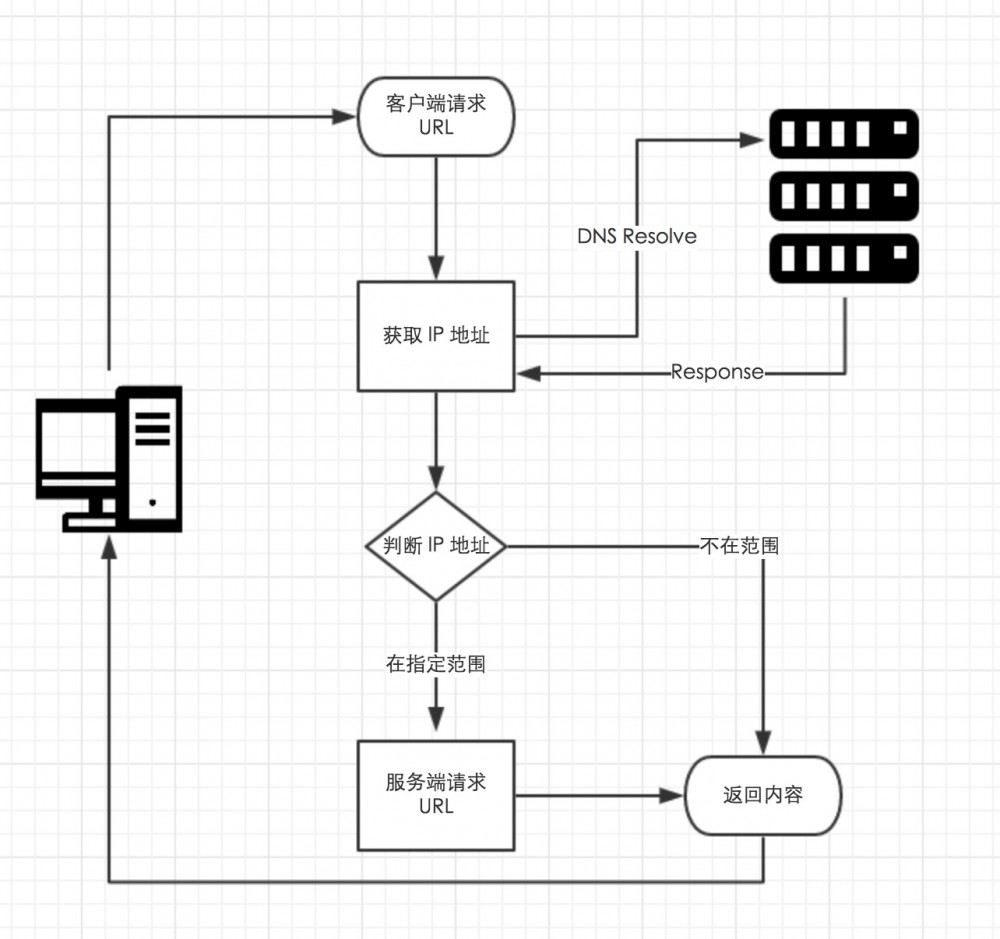 获取到请求的地址后,如果为域名的话,则通过 DNS 解析的方式获取到真实的 IP 地址,如果直接是 IP 地址的话,则直接对比是否在指定的 IP 段内。