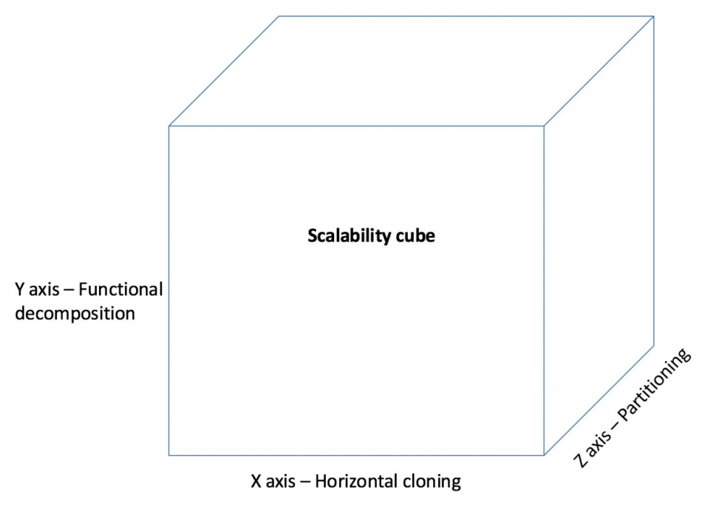 可扩展性是整体式架构面临的最大挑战之一。Martin Abbot 和 Michael Fisher 在他们合著图书 《可扩展的艺术》 中介绍了一种查看系统的可扩展性的有用方式;他们使用了一种三维可扩展性模型或扩展立方体。在此模型中,通过在负载平衡器后运行克隆版本来扩展应用程序称为 X 轴扩展或水平复制。另外两种扩展是 Y 轴扩展(或功能分解)和 Z 轴扩展(或数据分割),Y 轴扩展通过拆分不同实体来实现扩展,Z 轴扩展通过拆分类似实体来实现扩展。由于整体上的凝聚性,典型的整体式应用程序通常只能在扩展立方体的一个维度上扩展。随着生产环境收到更多请求,该应用程序通常采用的垂直扩展方式是添加更多资源供其使用,或者克隆到多个副本来进行响应。这种扩展方式低效且很耗资源。