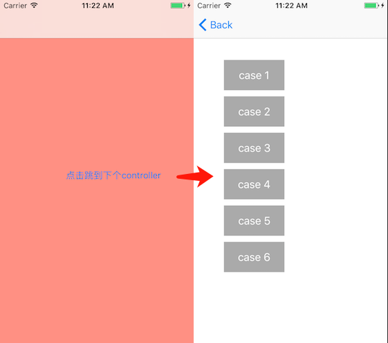 进入demo,有个Button,点击Button push到SecondViewController,