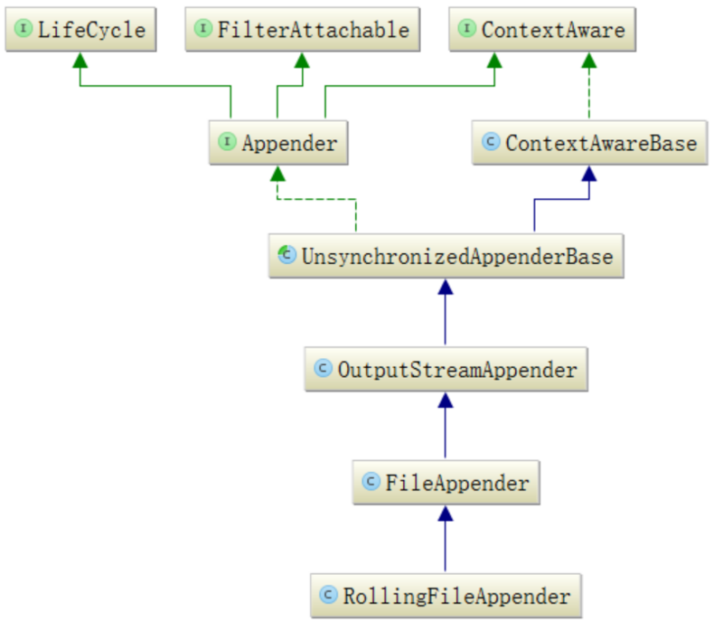 如果需要日志切割功能,首先要选用RollingFileAppender这种Appender,之后要配置TimeBasedRollingPolicy作为该Appender的滚动策略。