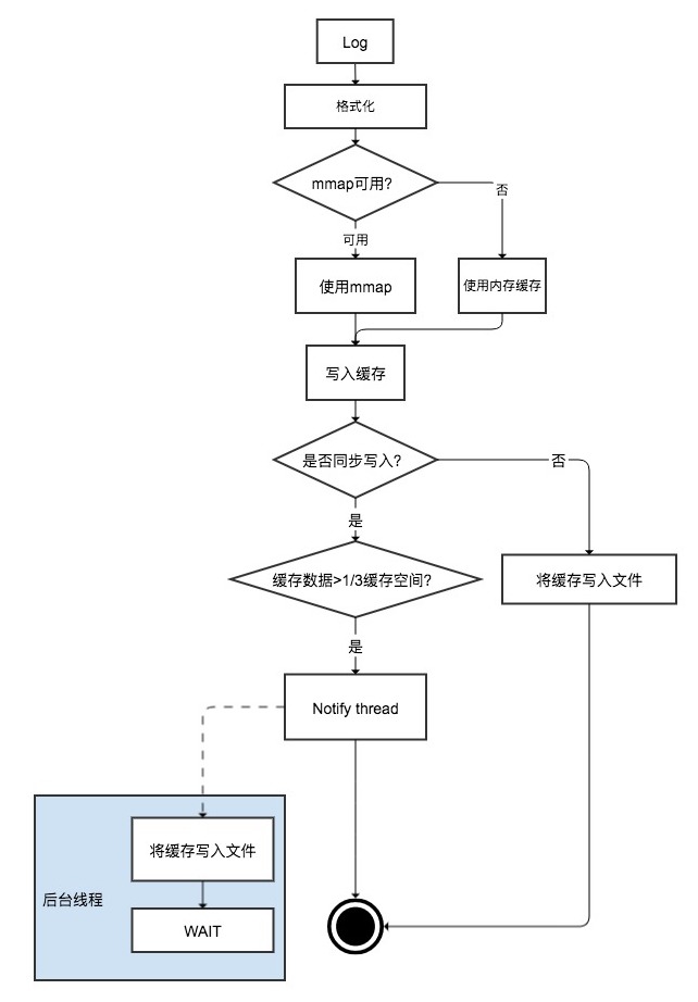 为什么不直接对输出log的文件进行mmap?而是写一块固定区域然后由后台线程读这块缓存区输出目标文件?
