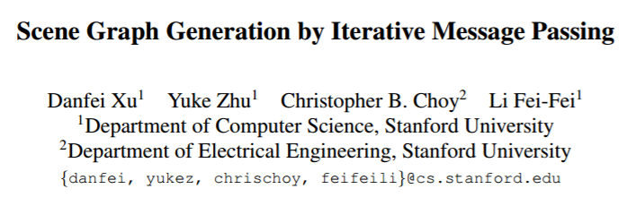 理解一个视觉场景(visual scene)不只是要理解单独的一个个物体。物体之间的关系也能提供丰富的有关这个场景的语义信息(semantic information)。在我们这项工作中,我们使用场景图(scene graphs)明确地对物体及其关系进行了建模。我们提出了一种全新的端到端模型,其可以从输入图像中生成这种结构化的场景表征(scene representation)。该模型可以使用标准 RNN 解决场景图推理问题(scene graph inference problem)以及通过消息传递(message passing)学习迭代式地提升其预测能力。我们的联合推理模型可以利用语境线索(contextual cues)来更好地预测物体及其关系。我们的实验表明我们的模型在使用 Visual Genome 数据集生成场景图和使用 NYU Depth v2 数据集推理支持关系(support relations)上的表现显著超越了之前的方法。