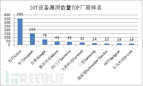 IOT设备漏洞数量TOP厂商排名(来源:CNVD)