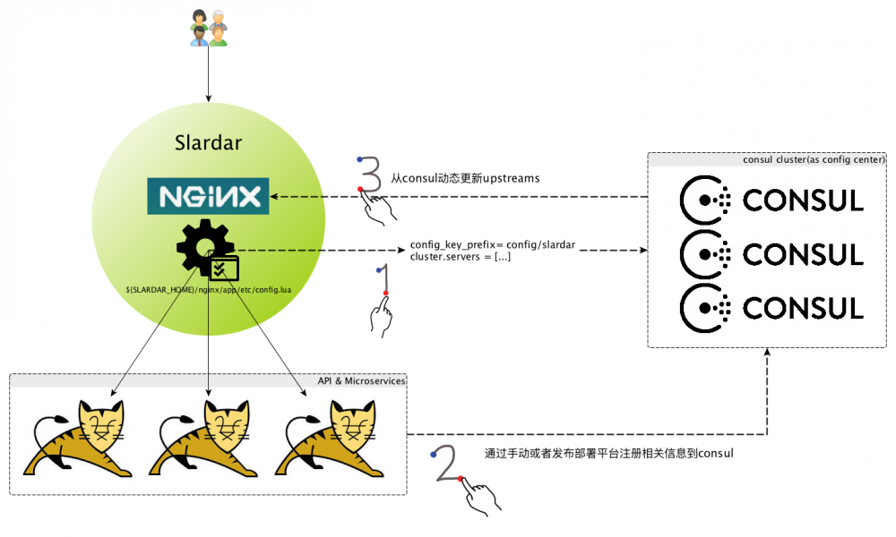 目前为止, slardar和consul更多只是作为服务注册和发现的基础设施(接入网关), 要让slardar作为API Gateway进行服务, 还需要更多lua编程, 此为后话, stay tuned~