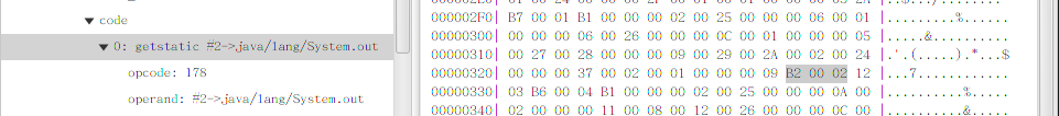 可以看到,该指令的操作码时0xB2,助记符是getstatic,它的操作数是0x0002,代表常量池的第二个常量。