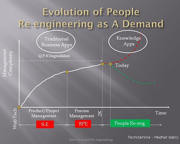 实际上,那些繁忙的高管必须知道的是,同他们进入商业社会的时候相比,事情已经发生了改变。想一想人力资本,已经不仅仅是金融资本,人力资本在这个行业中变得比以往任何时候都重要。看一下上文的时间线幻灯片中的时间点"今天",任何软件所有者和管理人员现在会发现他们正面临着一个关键的决定,要么继续S.E.和BPE/R,要么将他们的注意力转向以人为中心发展的新时代。决定权在你手中!