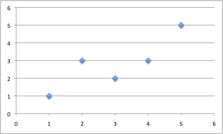 dataset = [[1, 1], [2, 3], [4, 3], [3, 2], [5, 5]]