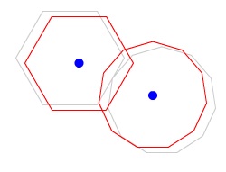 如果你用这个方式从每一个角度上对这两个图形进行处理,并都找不到任何的间隙,那么这两个图形就一定接触。如果你找到了一个间隙,那么这两个图形就显而易见地没有接触。