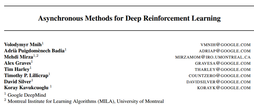 论文链接: https://arxiv.org/pdf/1602.01783.pdf