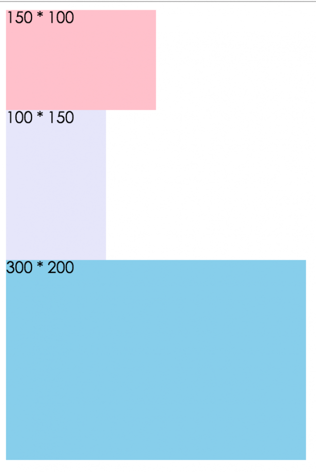 <div class="div1">150 * 100</div> <div class="div2">100 * 150</div> <div class="div3">300 * 200</div>