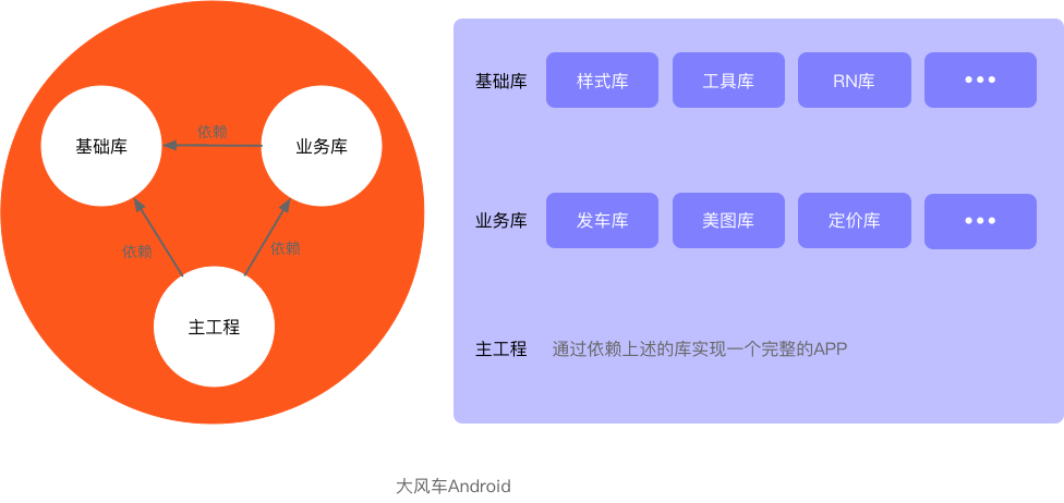 当然,上述的分层不是一蹴而就从一开始就设计好。因为初始的项目规模比较小,追求快速迭代和尽早上线,刚开始的大风车只有一个主项目,其他库都是之后因为重构或者因为新的需求进行拆分或者新建而产生的。