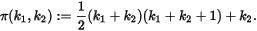 f(k1, k2) 和 f(k2, k1) 得到的结果是不同的。当然,如果你想得到相同的也是可以的,计算支持把两个数字排个序; k1 和 k2 都大很多,需要注意溢出的问题。 这个算法只有一个公式,实现起来很容易。我索性自己造了一个轮子, pairing 。公式的推导请移步 维基百科 。