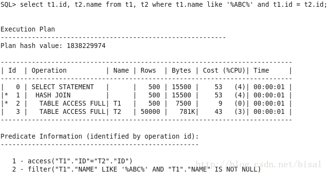 我们依旧采用上篇文章中使用的测试表t1和t2,数据量、索引和统计信息收集均相同。使用如下SQL执行计划不是最优的,