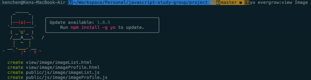 用 evergrow 脚手架生成视图相关的文件是非常方便的。要接着构建 Image 模块的视图,只需要用命令 yo evergrow:view Image 就能够生成表格和详情视图所需的 4 个基本文件。