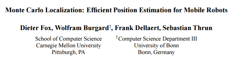 论文标题:蒙特卡洛定位:移动机器人的有效位置估计(Monte Carlo Localization: Efficient Position Estimation for Mobile Robots)