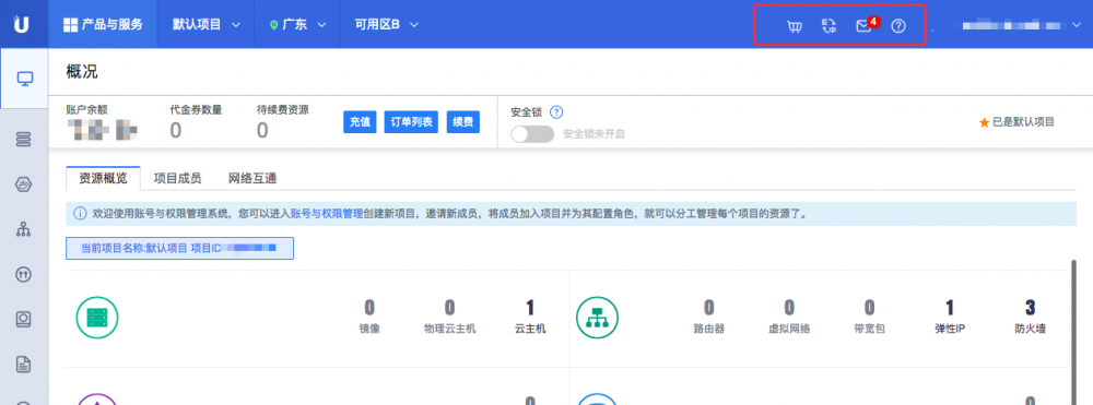 一般在设计通知中心时,都会在入口处显示一个未读消息数,这样不仅可以醒目地告知用户有未读消息,还能让用户更容易从众多小图标中区分出通知中心的入口。比如 ucloud 控制台的顶栏: