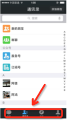 1、UITabBarController一般用于首页中的页面切换,比如微信的首页中四个Tab切换就是采用这个控制器管理的: