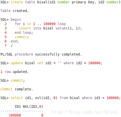 首先,准备测试数据,11g库表bisal的id1列是主键(确保id1列为非空),id2列包含空值,