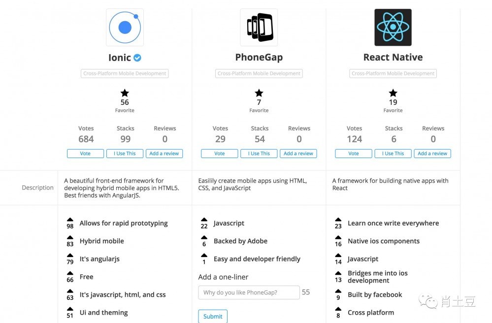 后面剩下的三个 React Native、NativeScript、Titanium。