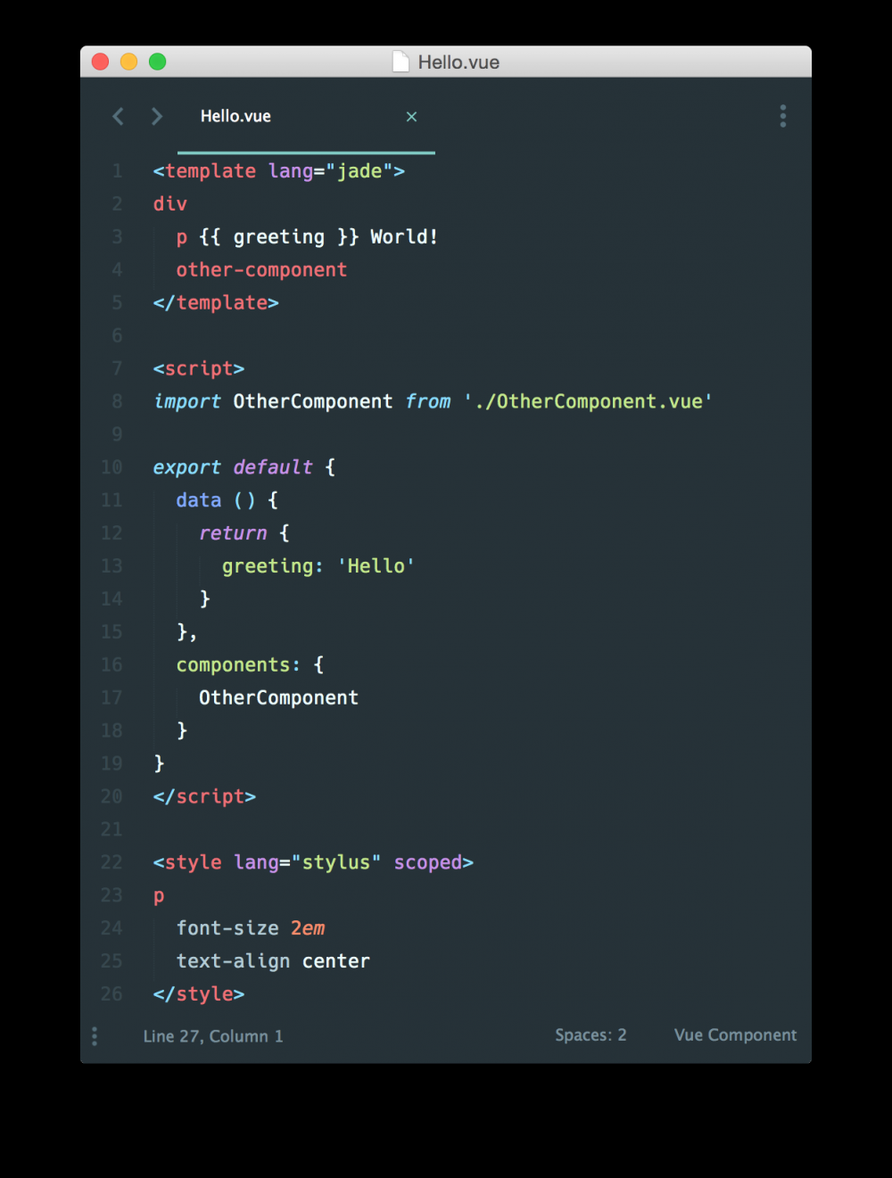 在配置好入口文件之后,就可以开始写组件了,推荐写 单文件组件 ,也就是 .vue 文件。语法就不再重复介绍,官方文档中写得很详细,能支持 ES6+,甚至可以配置 TypeScript 、Sass 、Stylus 、PostCSS 、Jade 等语法。