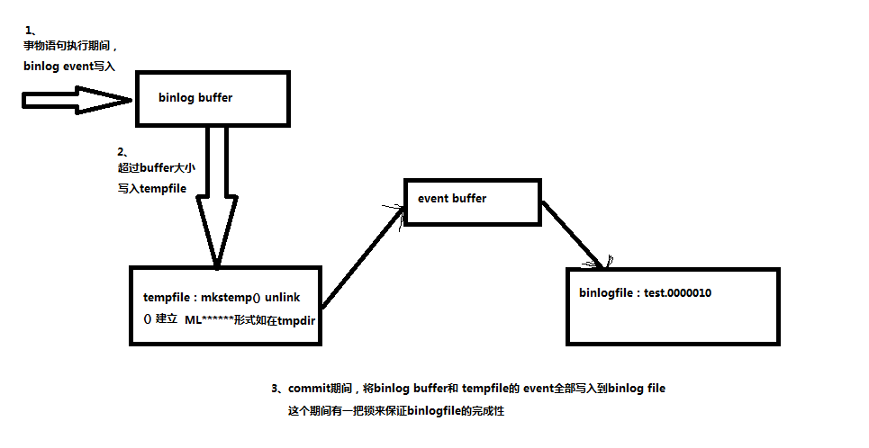 其实语句执行期间binlog event会写入到buffer或者temfile中,commit的时候同步到binlog真正的文件中