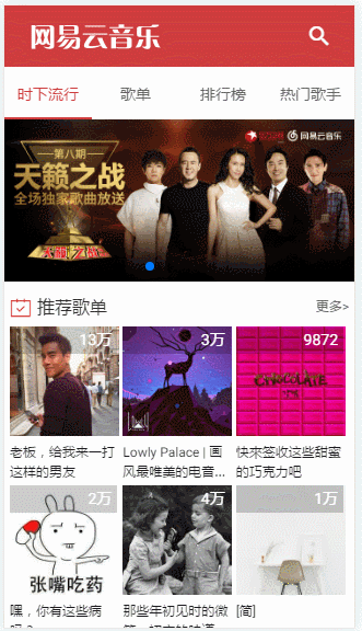 前言:自己学习VUEJS也一段时间,但一直没有做出来一东西。我自己一直喜欢用网易云音乐app,于是乎就做了这个app。