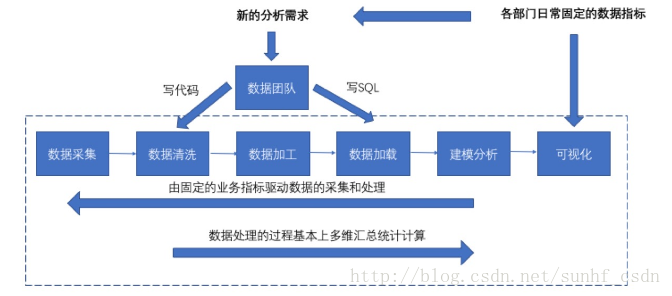 主要原因是,这样一种分析流程,是由固定的业务指标驱动数据的采集和处理,然后数据处理的过程基本上都是多维汇总的统计和计算