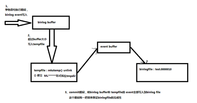 在<<MYSQL 什么时候同步binlog文件以及它的临时文件在哪里?>>一文中有如下的图