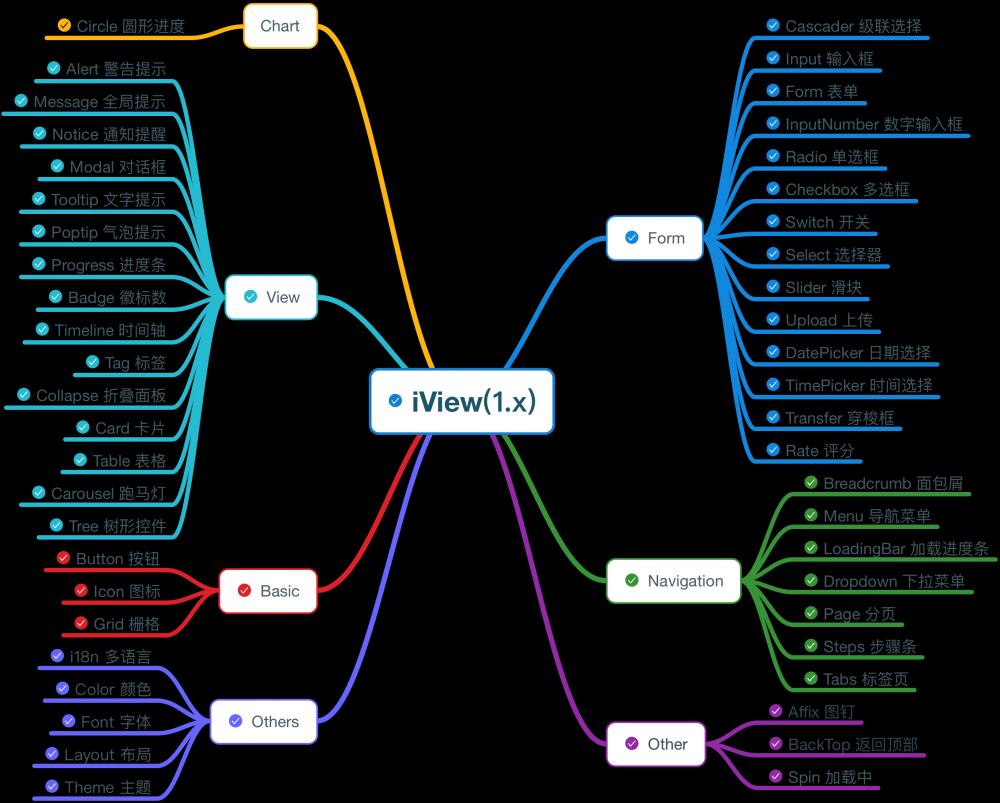iView 已经从最初的高质量 UI 组件库,逐步过渡到了从工程构建、主题定制、多语言、设计规范的一整套的前端解决方案。主要服务于中后台业务,目的就是让网站快速成型上线。