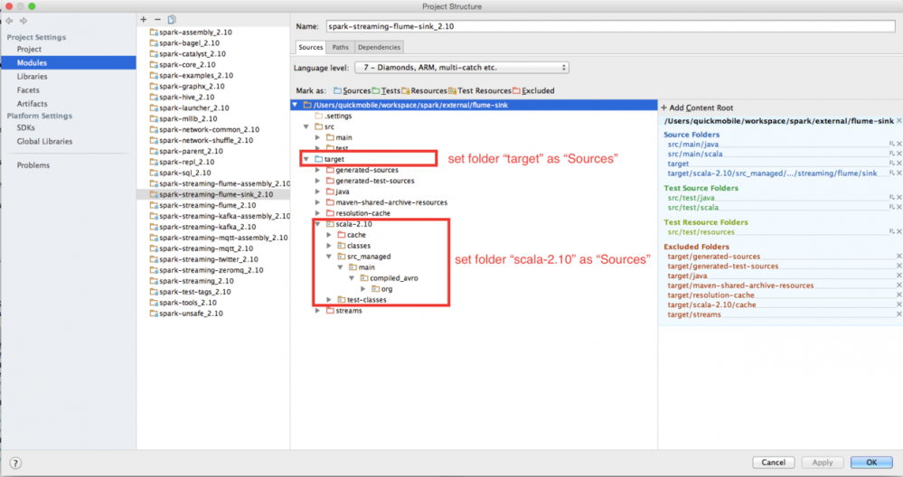 http://stackoverflow.com/questions/33311794/import-spark-source-code-into-intellj-build-error-not-found-type-sparkflumepr