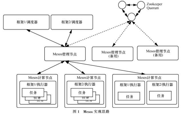 由于Mesos上的元数据可通过各个计算节点重新注册而进行重构,因此可通过Zookeeper解决单点故障问题。轻量级的Mesos架构包括以下4个组件。