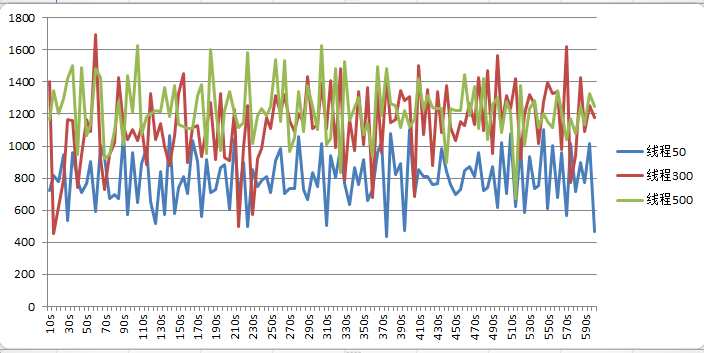 这是分别对应50个,300个,500个线程时候的TPS测试结果,QPS基本是TPS的20倍。