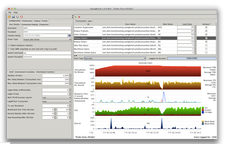 回到我们的话题,swingbench因为基于Java的原因,所以跨平台的支持还是很不错的。基本上我们是在Windows平台上测试服务端的数据库性能,用到了Java,那么使用JDBC是很自然的一件事情。