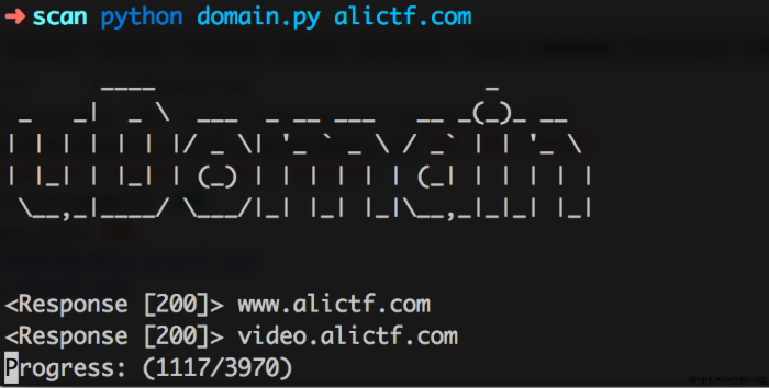 通过打开的弹窗提示,需要在 .alictf.com 的子域下面做,于是 fuzz 子域名: