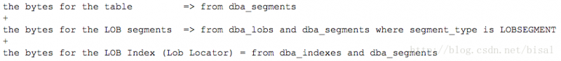 2.根据LOB包含的对象类型,可以根据dba_segments、dba_lobs和dba_indexes来计算实际容量。