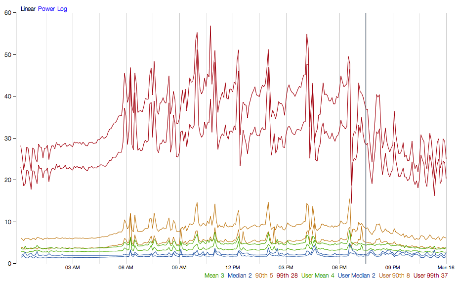 下图是Netflix Hystrix官方提供的一个Hystrix命令的性能监控,该命令以每秒60个请求的速度(QPS)向一个单服务实例进行访问,该服务实例每秒运行的线程数峰值为350个。