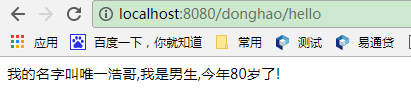 启动程序之后,浏览器访问:http://localhost:8080/donghao/hello,结果为: