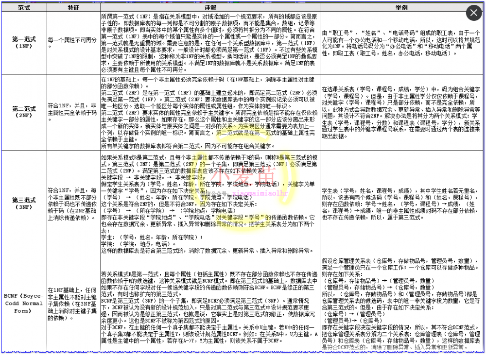 式,简称2NF。其余依此类推。各种范式呈递次规范,越高的范式数据库冗余越小。通常所用到的只是前三个范式,即:第一范式(1NF),第二范式(2NF),第三范式(3NF)。