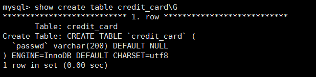 mysql> CREATE TABLE t_passwd_2(pass1 char(32));