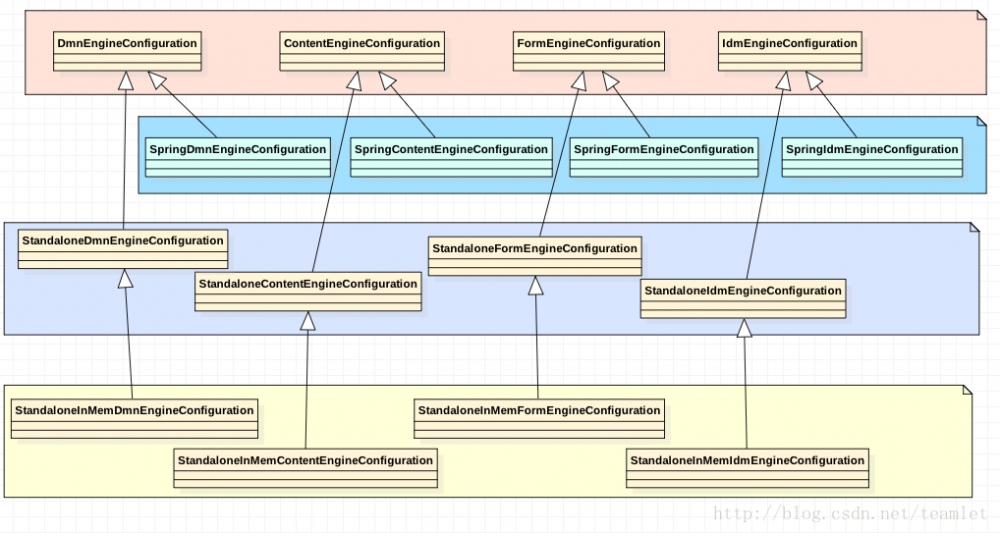 下图是除了流程引擎配置之外的4个引擎配置的继承关系图,流程引擎配置后面单独介绍。