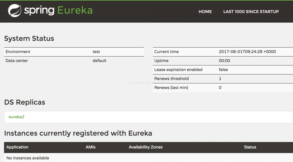 启动之后,登录http://10.191.30.24:1111/和http://10.191.30.25:1112/可以分别在DS Replicas看到注册的eureka2和eureka1.