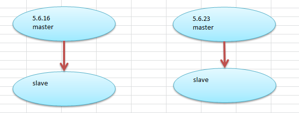 因为服务器迁移,目前一套硬件老化的MySQL主从服务器都需要替换为新服务器,总体评估了一下,在不改变版本的情况下,采用了较新的5.6子版本。就是如下图所示的左边和右边。