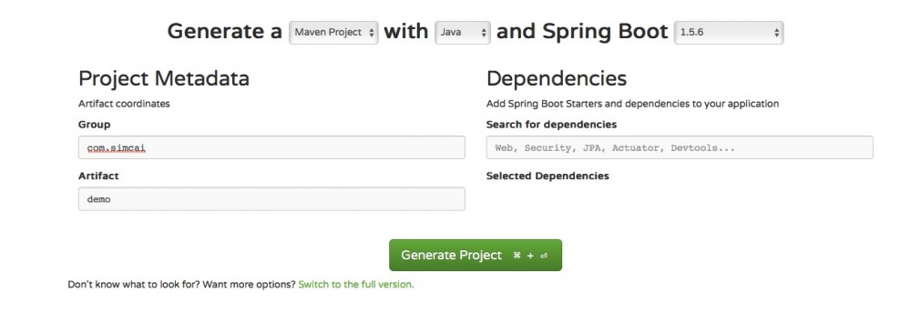 填写 Group 和 Artifact , 然后点 Generate Project 生成你的工程。